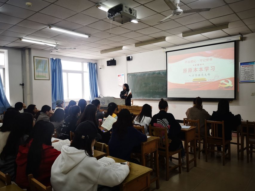 2019年10月18日下午,太阳成集团tyc33455cc人力资源党支部组织全体党员、积极分子于逸夫楼A507举办“不忘初心、牢记使命”主题教育学习活动。集中时间、集中精神、集中精力进行理论学习,切实提高运用党的创新理论武装头脑、指导实践、推动工作的能力,推动支部主题教育高质量开展。