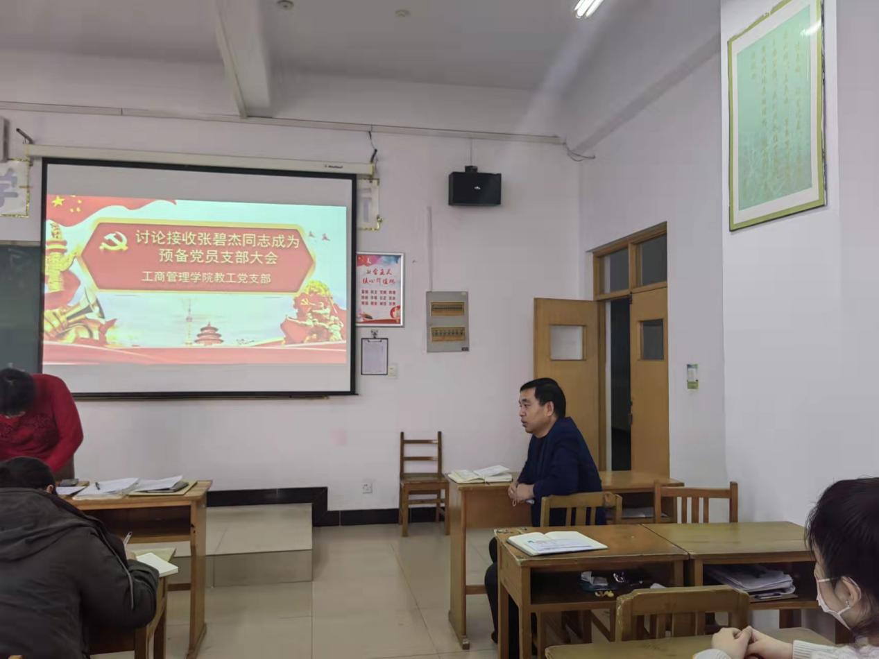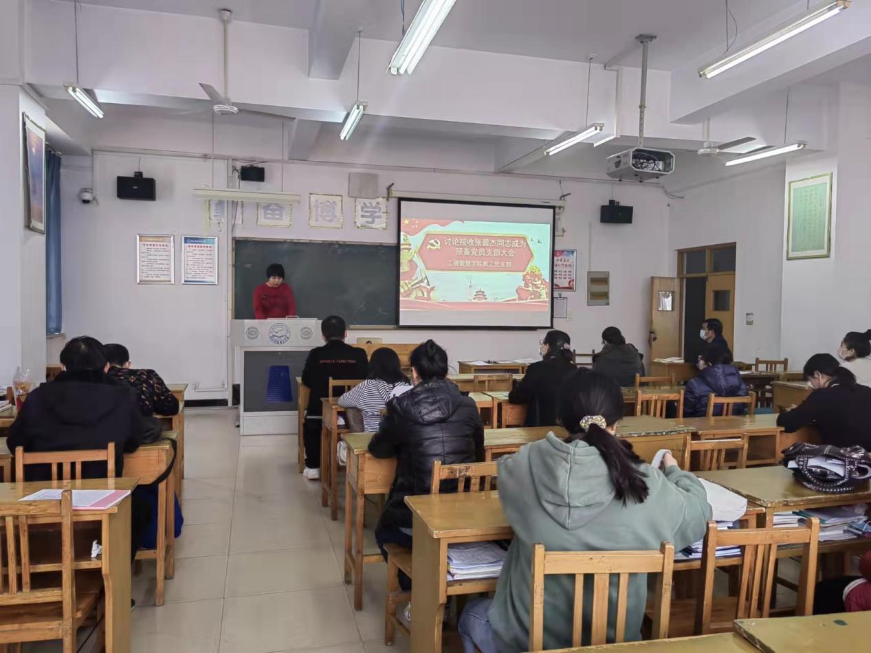 太阳成集团tyc33455cc教工党支部于2021年12月9日,召开讨论接收张碧杰同志成为预备党员支部大会。大会由高静老师主持,黄立明经理亲临指导,应参会党员31人,请假12人,党员实到19人。