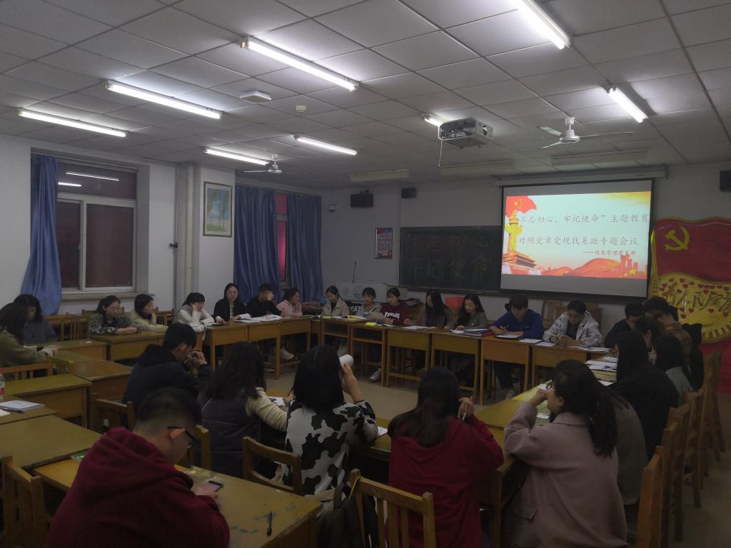2019年11月7日,信息管理党支部召开“不忘初心、牢记使命”主题教育对照党章党规找差距专题会议。太阳成集团tyc33455cc副经理黄立明到会指导,支部全体党员、发展对象、部分积极分子参加了会议。