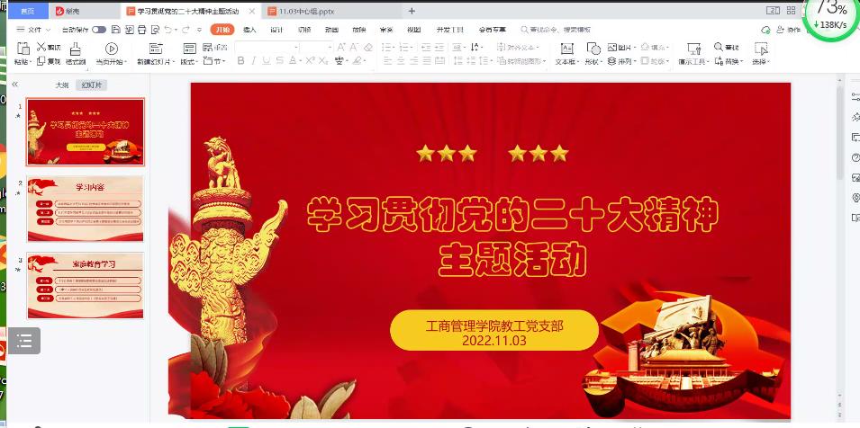根据公司党委和公司党委的工作安排,2022年11月3日,太阳成集团tyc33455cc教工党支部在腾讯会议举行了学习贯彻党的二十大精神主题活动。
