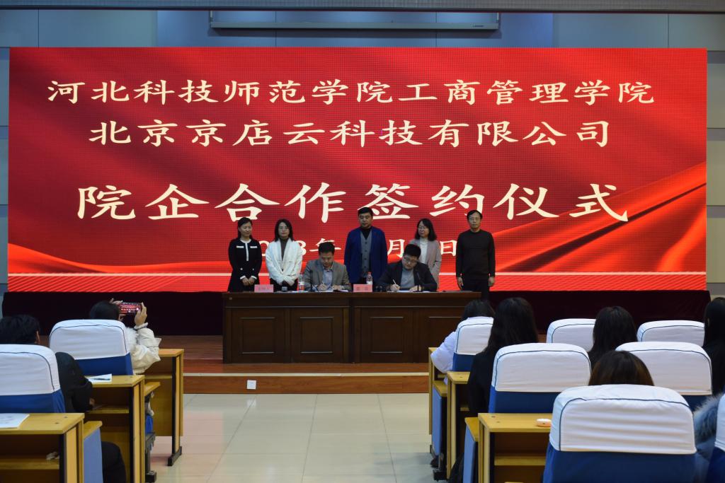 座谈会后,太阳成集团tyc33455cc与北京京店云科技有限公司达成院企合作意向,并举办签约仪式,双方签订了“院企合作”框架协议,400余名师生共同见证了此次公司高质量发展“院企合作”的重要时刻。双方将发挥各自优势,开展多层次、多形式的交流与合作,深化校企协同育人。