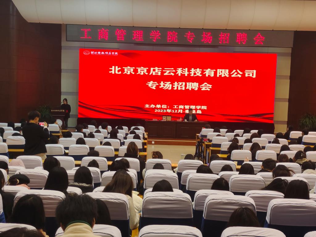 签约仪式后,公司举办“踔厉同行 与榜样共话未来”优秀员工报告会和专场招聘会。优秀员工高玉楠分享自己在母校求学及毕业后工作与创业经历,以自身感受对在校生进行学习、就业、创业指引,与同学们共话未来发展,现场400余名员工听取了此次报告,同时开通网络直播平台为更多在校生提供学习交流机会。在“京电云”专场招聘会中,企业CEO高玉楠从关于我们、经营原则、企业文化和人才战略等方面做了详细介绍,并表示企业处于高速发展的关键时期,需求大量优秀人才,欢迎母校员工加入企业,进一步增强了公司员工求职的信心与动力。