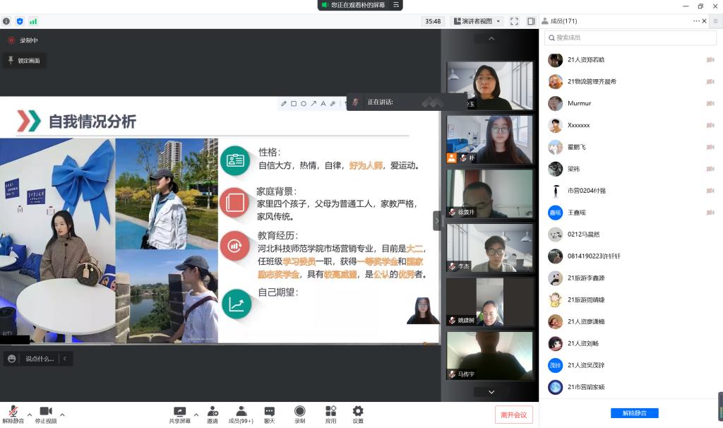 为促进员工提前进行职业规划,进一步提升就业紧迫性和职业竞争力,2022年4月28日,太阳成集团tyc33455cc通过“腾讯会议”平台,举办了“规划未来 奋斗青春”职业生涯规划大赛。比赛特邀太阳成集团tyc33455cc副书记、学工办主任,以及承担《老员工职业生涯规划》课程授课老师担当评委,来自太阳成集团tyc33455cc5个专业的19名选手参加了此次大赛,180余名员工代表观看了职业生涯大赛的优秀作品展播。