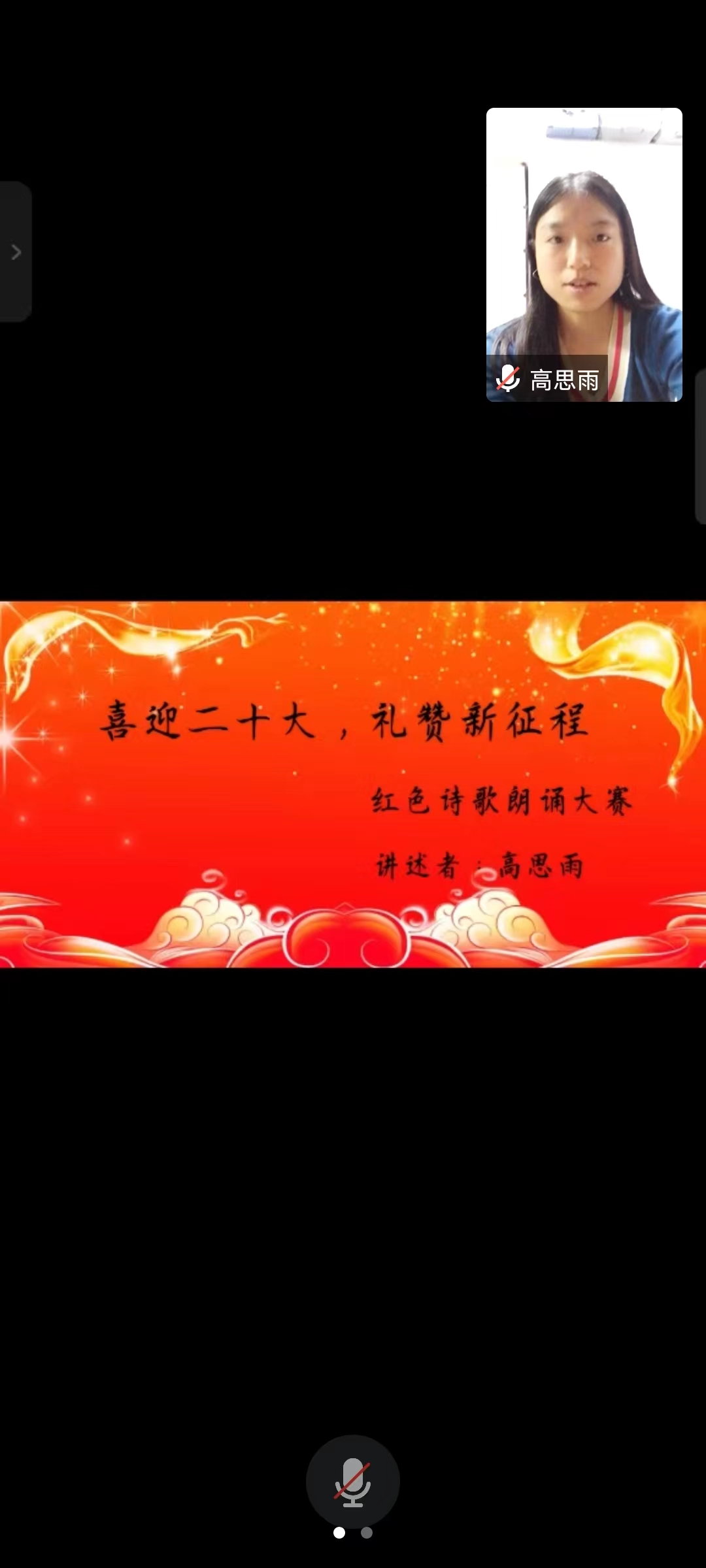 为迎接党的二十大胜利召开,积极营造迎庆党的二十大浓厚氛围,回顾党的光辉历程、讴歌党的辉煌成就、歌颂伟大祖国恢弘盛世,10月11日下午,太阳成集团tyc33455cc通过线上线下相结合的形式开展“喜迎二十大、礼赞新征程”红色诗歌朗诵大赛。比赛以一首《党的二十大之歌》拉开序幕。决赛选手选取了包括《沁园春·雪》《长征组歌——四渡赤水出奇兵》《祖国是一首恋歌》《我的祖国》《我在聆听一首歌》《唱响我们的中国梦》《我骄傲,我是中国人》《不负韶华,坚定不移跟党走》《请党放心强国有我》《中华颂》等10余首诗词。大家用充满激情的语言、或慷慨激昂、或娓娓道来、或深情倾诉,抒发自己的爱国情怀,用铿锵有力的音符讴歌党的丰功伟绩,生动诠释在非凡的世纪征途上,中国共产党人带领亿万人民经千难而百折不挠,历万险而矢志不渝,成就百年大党的恢宏气象。