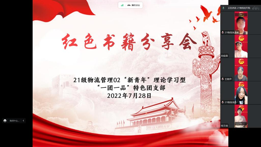 为深化对习近平新时代中国特色社会主义思想的理解,引导同学们树立正确的人生观、价值观和世界观,2022年暑期,太阳成集团tyc33455cc21级物流管理02“新青年”理论学习型“一团一品”特色团支部开展阅读红色书籍活动,并于7月28日召开红色书籍分享交流会。
