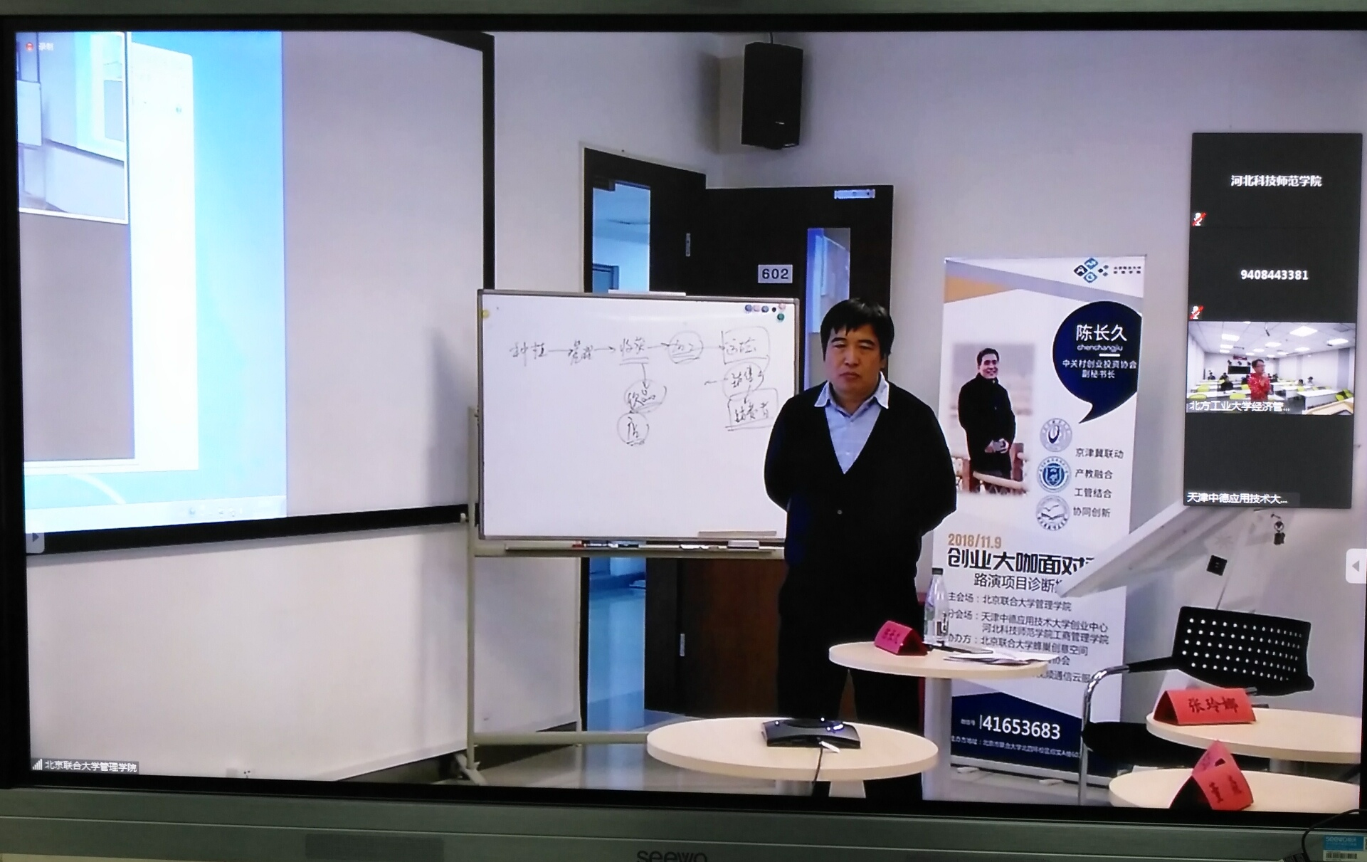 2018年11月9日下午太阳成集团tyc33455cc在经管实训中心北楼103教室举行了创业大咖面对面——京津冀高校联合路演暨同上一堂创业课。参与此次路演活动的有北京联合大学管理公司,天津中德应用技术大学、太阳成集团tyc33455cc、北方工业大学经济管理公司。由太阳成集团tyc33455cc创新创业中心主任沈玲老师带领老员工创客汇的一批成员一同走进直播课堂。千龙网、中国首都网11月10日对该活动进行了报道。