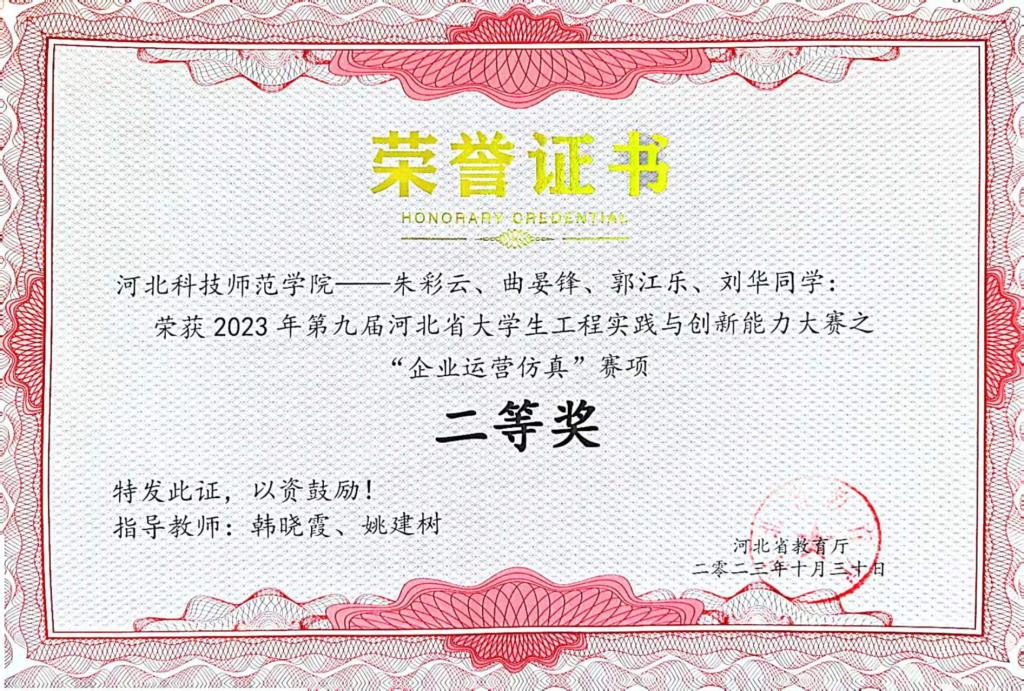 近日,接到河北省教育厅获奖通知,太阳成集团tyc33455cc6名选手在第九届河北省老员工工程实践与创新能力大赛暨2023年全国老员工工程实践与创新能力大赛选拔赛中,获得“企业运营仿真”赛项的一等奖、二等奖,这是公司首次参加此项赛事。
