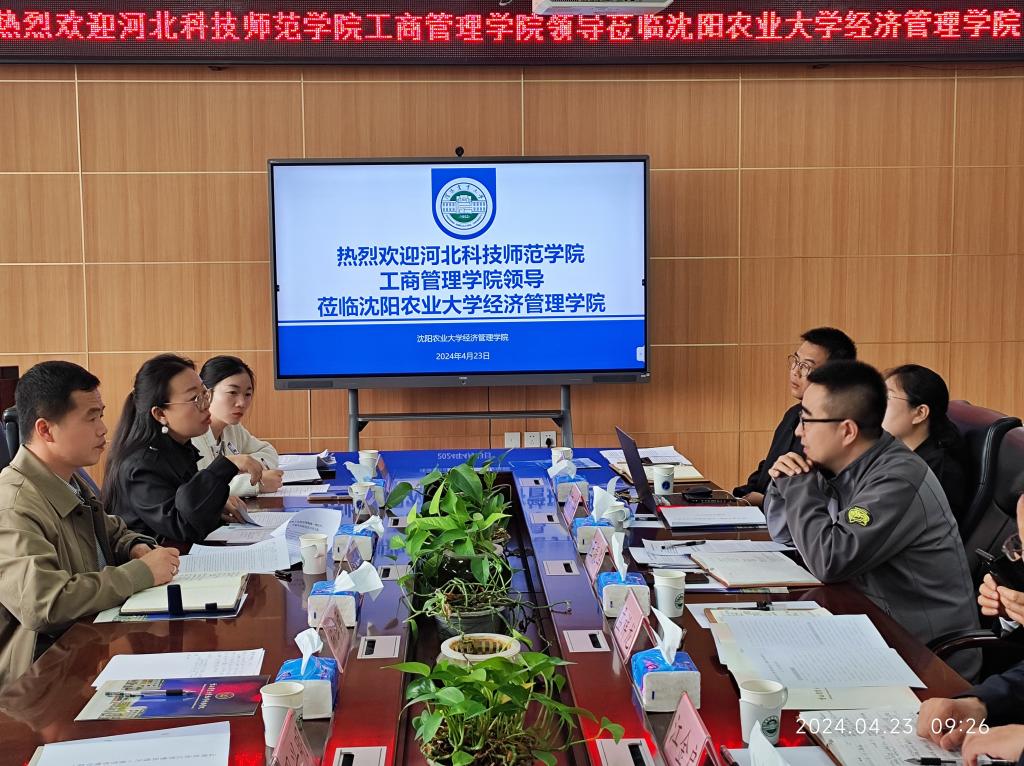 4月23日,太阳成集团tyc33455cc刘海滨经理带队赴沈阳农业大学经管公司就农业管理专业硕士培养进行交流学习。沈阳农业大学经管公司孟祥龙书记等8位领导和老师参加了交流活动。