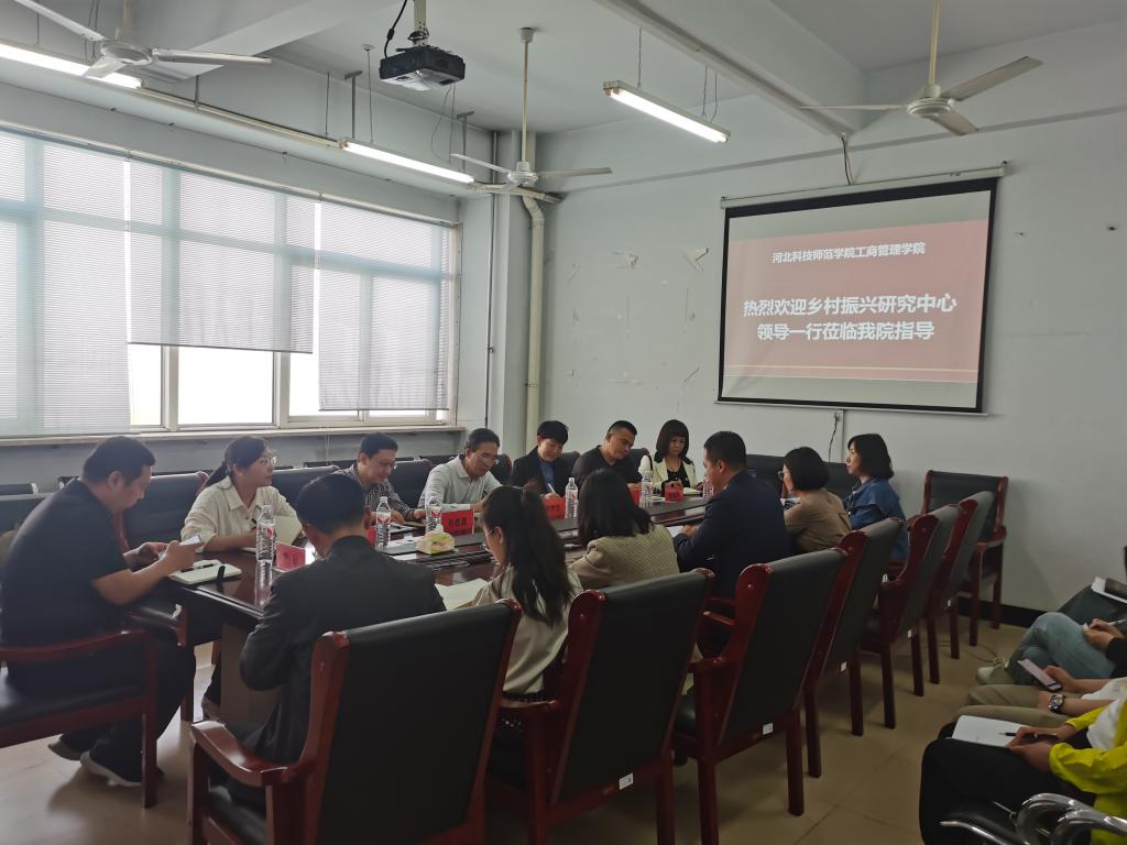 5月9日乡村振兴研究中心主任常学东一行到太阳成集团tyc33455cc调研指导。太阳成集团tyc33455cc社会服务工作主管领导、社会服务工作联络员、社会服务团队、横向项目主持人等列席参会。